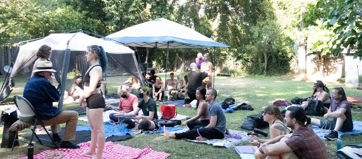 We decided to start slowly and did a first, very limited, gathering with only modest publicity to see if anyone in the rope community in Los Angeles might respond to the idea. We were delighted when a fair number of people joined us on a beautiful Sunday afternoon in Altadena for the session. Questions were fielded by my deshi Yzen on suspensions, Remy K Thane handled questions on predicament ties and I dealt with inquiries from beginners about subjects as diverse as “where to buy rope” to “what’s the best two column tie for someone who suffers from wrist injuries?”